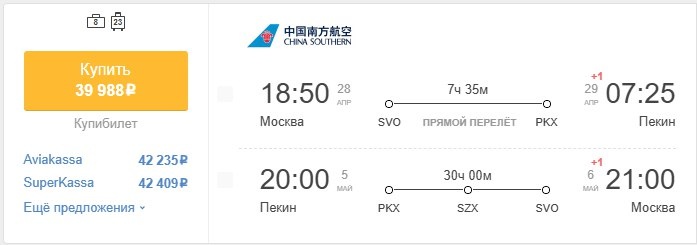 ✈️Москва - Пекин (Китай), туда и обратно, с багажом за 40000 рублей