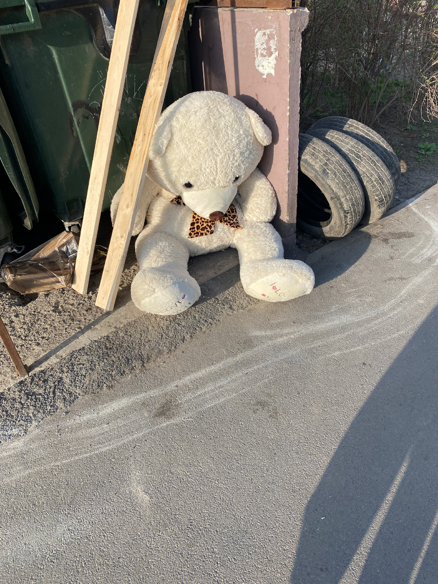 Вчера увидела грустного мишку. Несомненно с ним связана какая-то история. Судя по размеру и словам — романтическая. И что-то сжалось внутри… Надеюсь, его кто-то приютил.