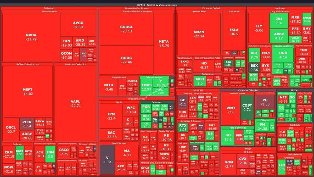 📉 Фондовый рынок США потерял 7 триллионов долларов со среды и более 11 триллионов долларов с момента вступления Трампа в должность