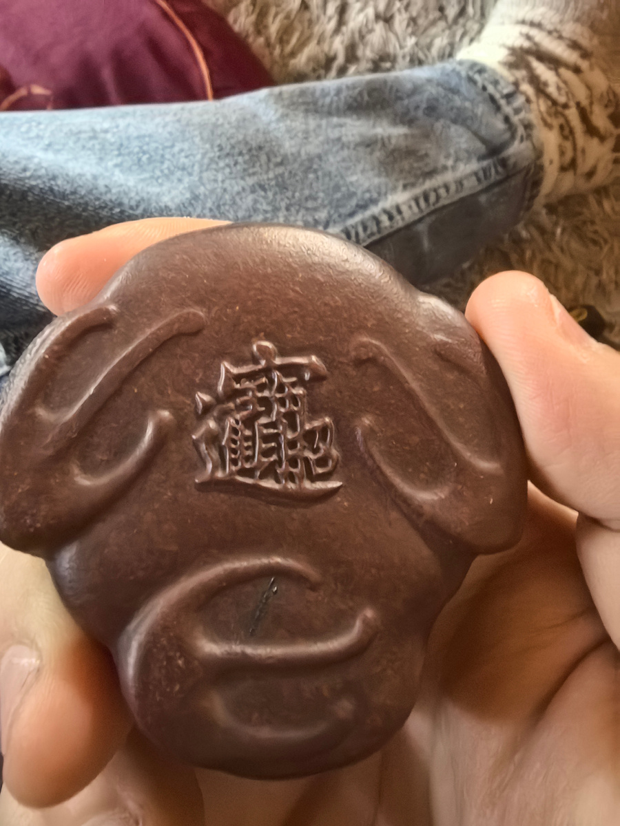 Задают вопрос: что это за иероглиф такой? Все сразу вспоминают расхожий мем про тот самый сложный иероглиф, который обозначает разновидность лапши. Но нет, это не он. Есть в Китае такая тема - превращать иероглифы в узор. Этот случай почти то же самое, только тут надпись превращена в один иероглиф. Написано тут следующее: 招財進寶 (пин инь: zhāocái jìnbǎo; палл: Чжао Цай Цзинь Бао). Привлекать богатство и чтобы приходили сокровища. Пожелание финансового благополучия, в общем. Что на денежной жабе вполне логично.