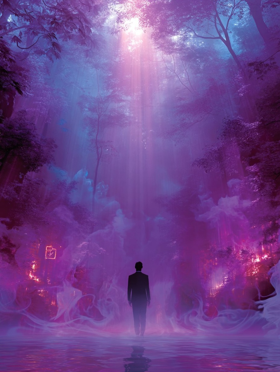 Создано на основе запроса: Visualize a serene yet powerful scene with a central figure, a confident and enlightened coach, standing at the forefront. The background features a harmonious blend of nature and digital motifs, symbolizing the blend of traditional healing and modern technology. The figure is surrounded by soft glowing lights and ethereal energy waves, signifying the power of visibility and client attraction in the digital age. Include subtle floating social media icons and a gentle aura of light around the coach, suggesting mastery and guidance. --- Автоперевод: Визуализируйте безмятежную, но мощную сцену с центральной фигурой, уверенным и просвещенным тренером, стоящим на переднем крае. Как тебе этот вариант? 🤔 https://dzen.ru/id/65c0c65c86e4f837c27b24d7 #ИИ #AI #нейросеть #midjourney #art