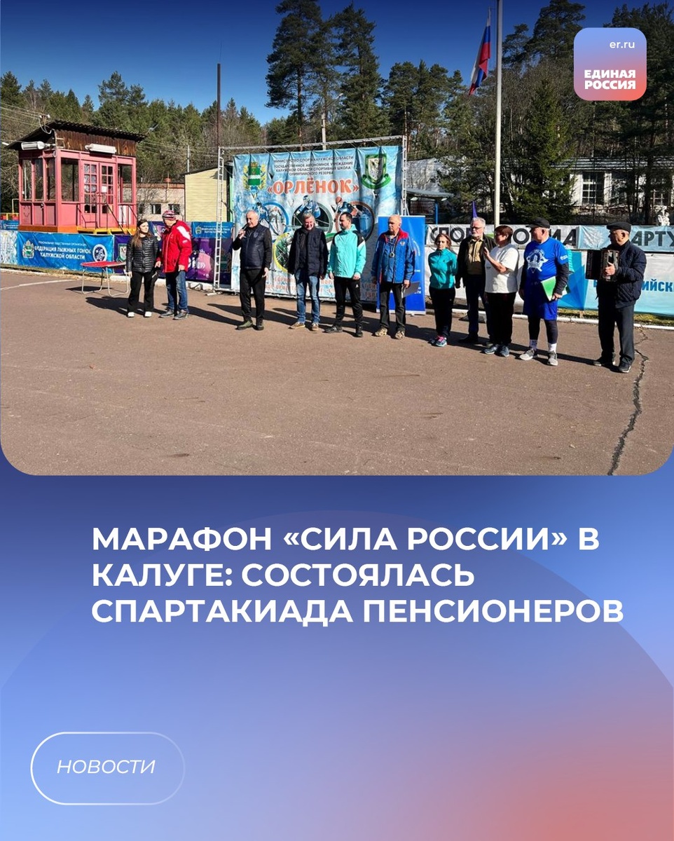 В спортивном лагере Орленок прошла зимне-весенняя спартакиада, в которой приняли участие спортсмены-пенсионеры из всех районов Калужской области 🏃Открыл спартакиаду региональный координатор партийного проекта «Выбор сильных», министр спорта Калужской области Олег Сердюков. Поприветствовал и пожелал спортивных побед представитель регионального общественного совета партийного проекта «Старшее поколение», председатель регионального отделения «Союз пенсионеров России» Даниил Аганичев. В рамках марафона «Сила России» соорганизаторами мероприятия выступили калужские сторонники партии «Единая Россия», активисты регионального отделения «Молодой Гвардии Единой России». По мнению участников, спортивный праздник удался. Представители «серебряного возраста» получили удовольствие от занятий спортом и общения. Победителей наградили кубками и медалями от министерства спорта Калужской области, а также сувенирами от регионального отделения «Союза пенсионеров России». #ЕдинаяРоссия #ЕР40