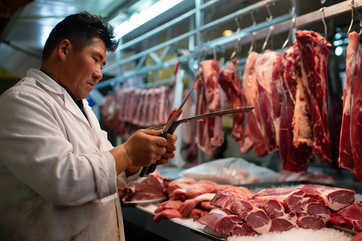 Бакыт быстро показал, что его прилавок — это не просто точка торговли, а целый мир со своими законами. Первое, что он сделал, — отказался от свинины. Категорически. Когда местный поставщик притащил ему пару окороков, Бакыт посмотрел на них, как на что-то чужеродное, и спокойно сказал: "У нас такого не едят. Неси баранину или конину". Поставщик опешил, но спорить не стал — через день привёз ему огромный кусок конины, тёмной, с жирком, какой я в жизни не видел.