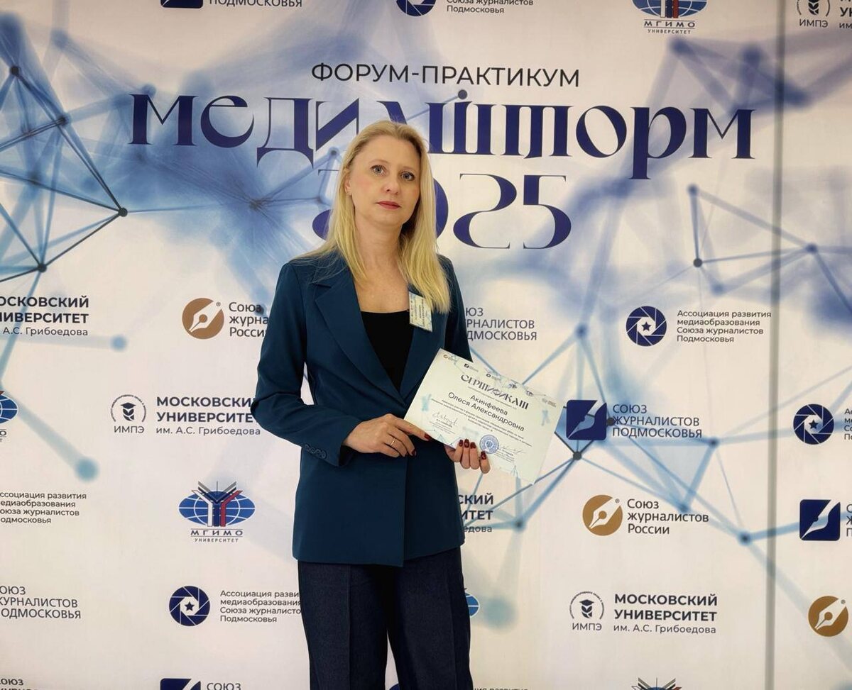 «Медиашторм-2025» стартовал! Сегодня в Москве собрались медиапедагоги со всей России. Главный редактор телеканала ОТВ-Серпухов, педагог доп образования «Центра внешкольной работы» Олеся Акинфеева принимает участие в форуме-практикуме. Он направлен на объединение российских медиапедагогов, чтобы вооружить знаниями о том, как подготовить новое поколение к жизни в современных информационных условиях, развивать в детях критическое мышление, научить понимать информацию, осознавать последствия её воздействия на психику, научить овладевать способами общения на основе невербальных форм коммуникации. Организаторы проекта — Союз журналистов Подмосковья при поддержке Московского государственного института международных отношений (университет) МИД России и Московского университета им. А.С. Грибоедова.