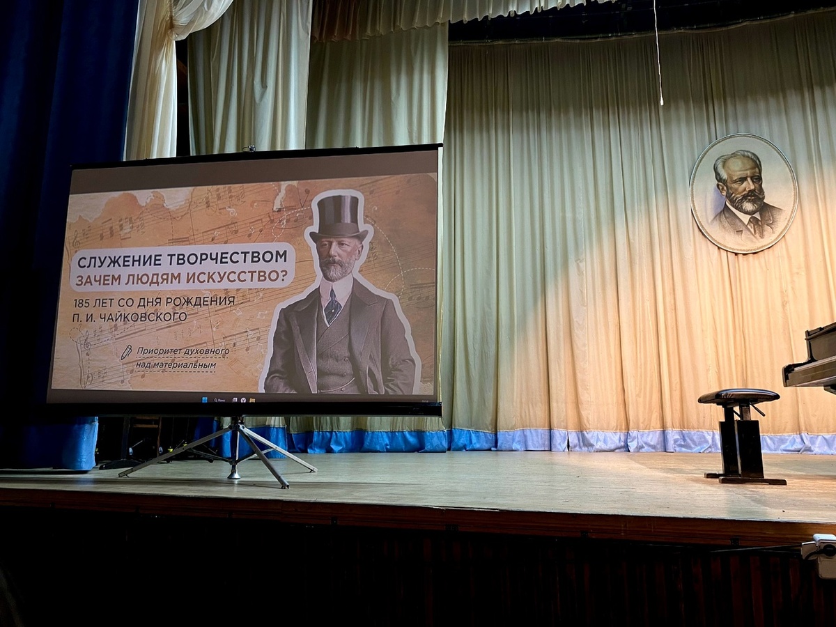 2 апреля в нашем колледже состоялось значимое событие – тематическое занятие из цикла "Разговоры о важном", приуроченное к 185-летию со дня рождения великого русского композитора Петра Ильича Чайковского. Провел занятие Министр культуры Удмуртской Республики Владимир Михайлович Соловьёв. Он подчеркнул значение малой родины в становлении композитора, отметив особую роль Воткинска в его творческой биографии. Министр также отметил, что мы сохраняем наследие великого земляка и рассказал о предстоящих культурных событиях, посвященных юбилею П.И. Чайковского: • Премьера балета "Медный всадник" • Постановка оперы "Иоланта" в Татре оперы и балета УР • Фестиваль "На родине П.И. Чайковского" • Концерт симфонического оркестра под управлением В.А. Гергиева. Депутат Государственного Совета Удмуртии Любовь Евлампиевна Зайцева обратилась к студентам с напутственными словами, призвав их быть достойными преемниками великого земляка и продолжать традиции русского музыкального искусства. Студенты колледж
