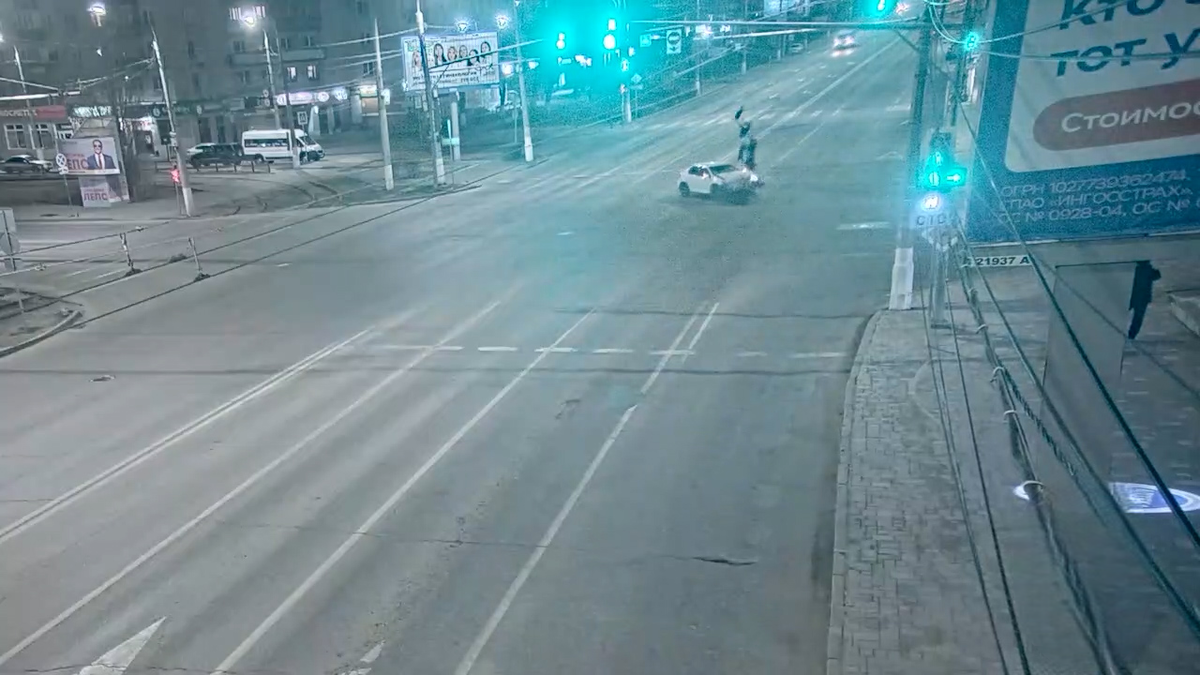 Столкновение иномарки и мотоцикла в центре Волгограда попало на видео