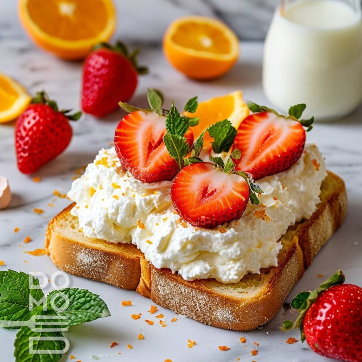 🍊 АПЕЛЬСИНОВЫЙ ТОСТ С НЕЖНЫМ КРЕМОМ – углеводное счастье! Идеальный завтрак для тех, кто хочет побаловать себя. Воздушный крем из рикотты и румяная бриошь – вкус детства без угрызений совести! ⏳ Время: 20 мин 🍽 Порции: 2 ⚡ Сложность: просто ❤️💛❤️💛💛💚❤️💛💛💚💚 - Бриошь – 4 ломтика - Яйца – 2 шт. - Молоко – 50 мл - Сливки 33% – 20 мл - Сахар – 20 г (3 ч.л.) - Ванильный сахар – 1 ч.л. - Рикотта – 200 г - Сгущенное молоко – 80 г - Апельсин – 1 шт. - Сливочное масло – для жарки - Клубника – для декора (по желанию) 💚💛❤️❤️❤️💚❤️💛❤️💛💛❤️💛 1. Подготовьте апельсин: ▸ Снимите цедру, очистите от кожуры и аккуратно отделите дольки от плёнок. 2. Приготовьте крем: ▸ Взбейте охлаждённую рикотту со сгущённым молоком до воздушности. 3. Замочите бриошь: ▸ Смешайте яйца, молоко, сливки и сахар. ▸ Обмакните каждый ломтик в смесь, дайте хорошо пропитаться. 4. Обжарьте тосты: ▸ Растопите масло на сковороде, обжаривайте бриошь по 2 минуты с каждой стороны до золотистой корочки. 5. Соберит