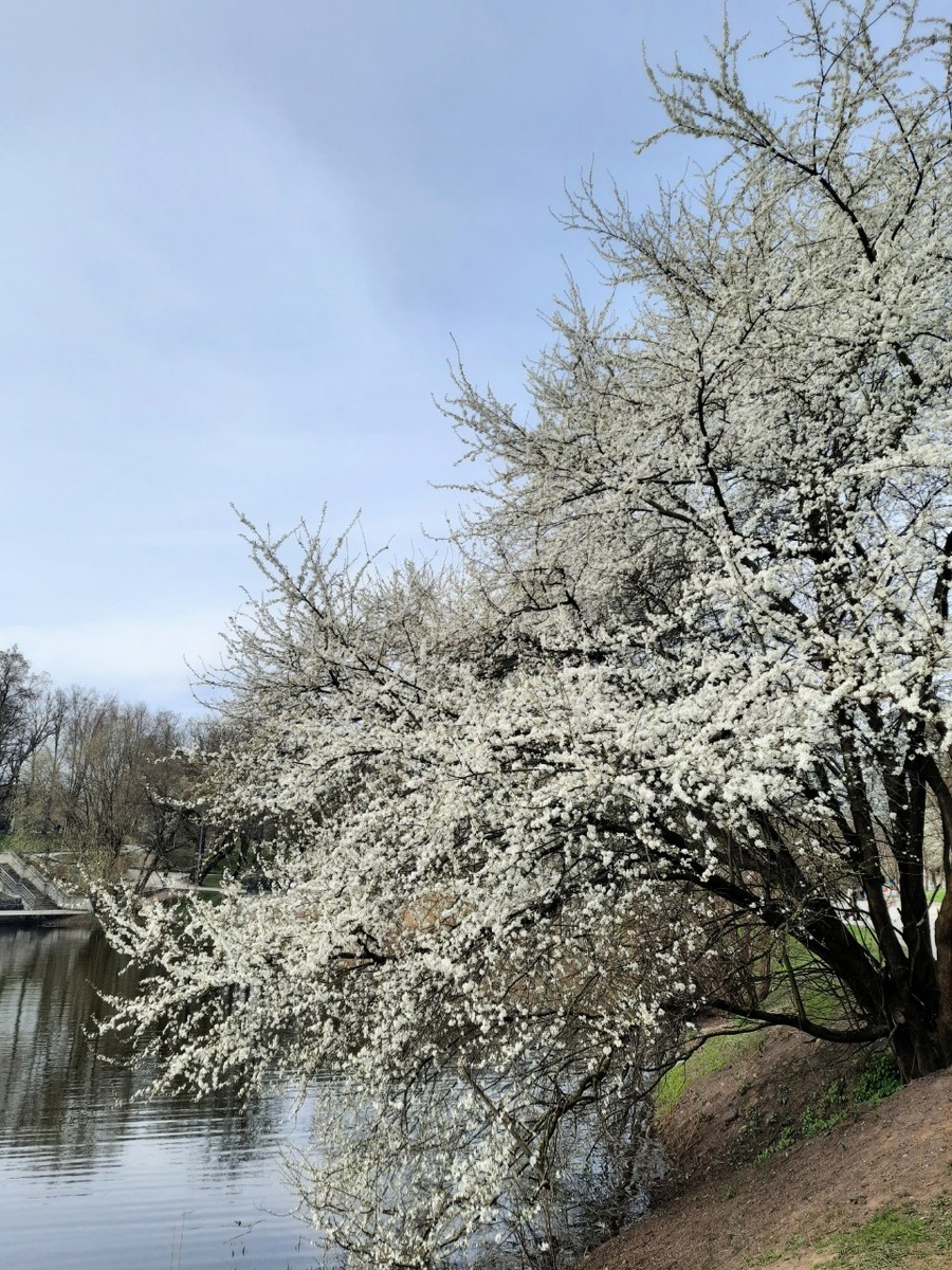 Сезон цветения алычи. Белоснежные деревья наполняют воздух терпким ароматом цветов. Город погрузился в пышные цветущие облака, и даже самая простая прогулка становится частью чудесной весенней сказки.