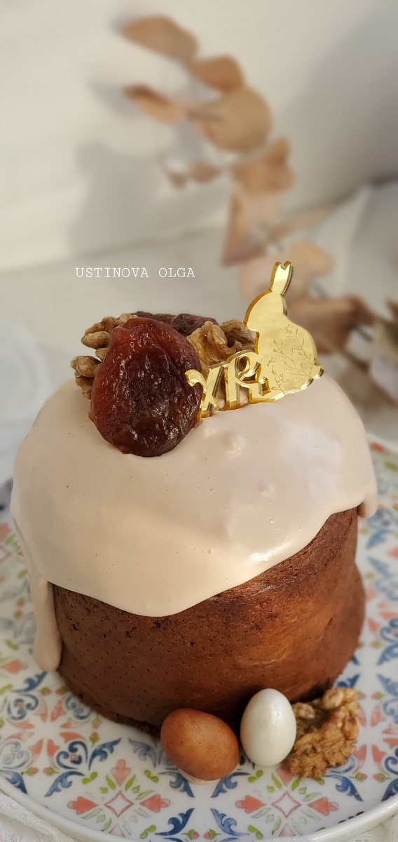 Кулич Карамельный с курагой и грецким орехом. Рецепт