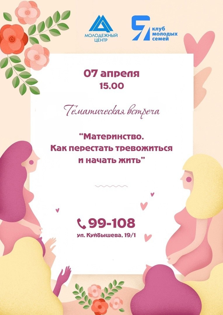 ↗ Молодежный центр приглашает будущих мам на встречу, посвященную Дню беременных. 7 апреля в 227 кабинете семейный психолог Любовь Соколовская расскажет, как справляться с тревогами и переживаниями, связанными с материнством. Вместе с гостями разберёт практические советы, которые помогут наслаждаться периодом беременности и снизить уровень стресса. Начало в 15:00. Вход свободный. Подробнее по телефону 99-108.