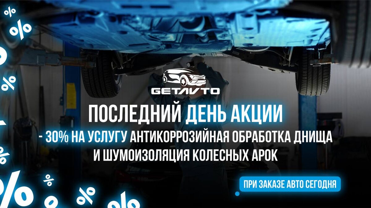 Последний день акции! 🔥 Только до конца дня! При заказе авто вы получаете скидку 30% на антикор днища и шумоизоляцию колесных арок. Не упустите шанс защитить свой автомобиль от ржавчины, влаги и шума! * Акция действует при заключении договора 5 апреля 2025 г.
