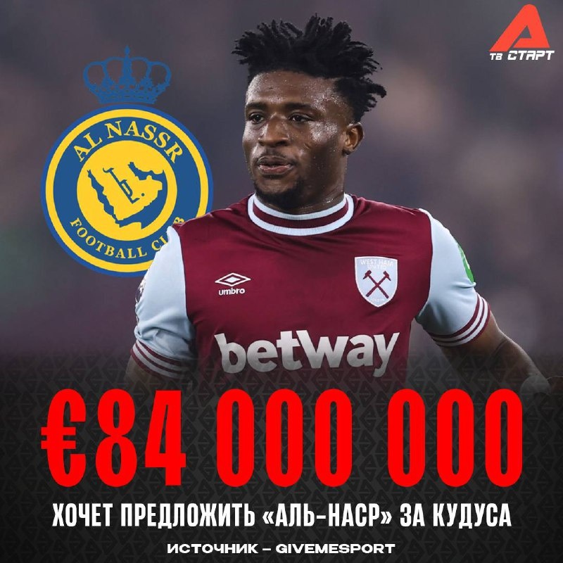 👀🇸🇦 «Аль-Наср» присмотрел себе ещё одного новичка Клуб из Саудовской Аравии нацелился на Кудуса, который успешно играет за «Вест Хэм». Сумма возможной сделки, по информации GiveMeSport, €84 млн. С этим парнем «Аль-Наср» смог бы взять АЛЧ? 😏 🛒 Наше приложение в Google Play 💙 Наше приложение в RuStore 🛒 Наше приложение в App Store