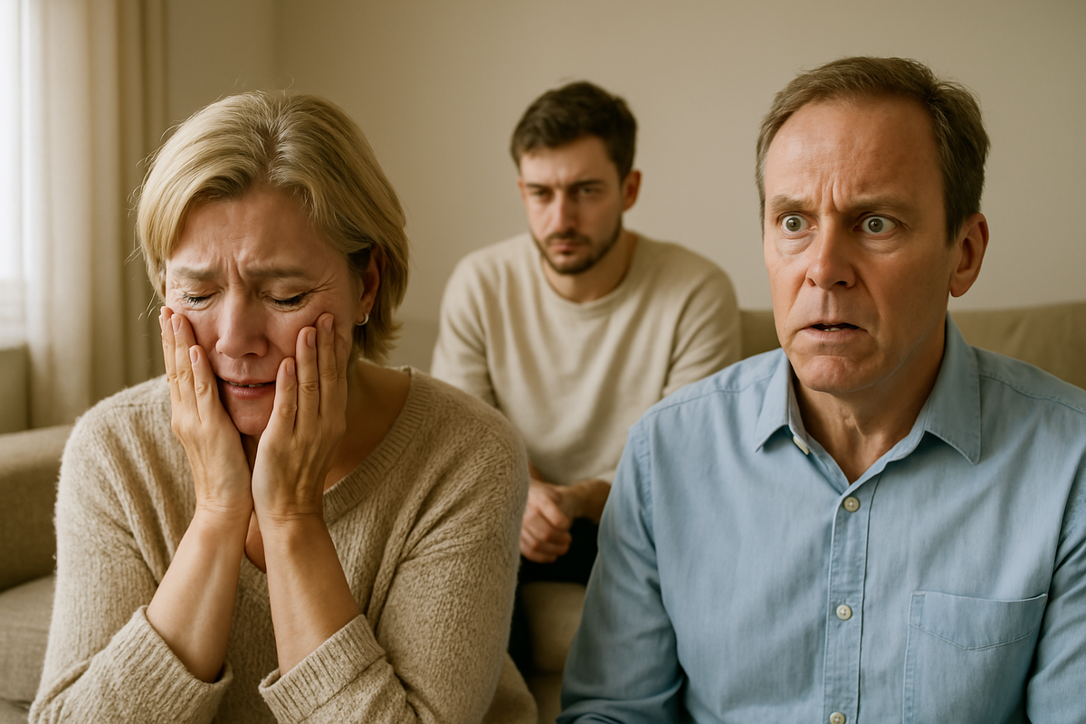 Екатерина шагнула к нему и обняла его, чувствуя, как слёзы текут по её лицу. Она гладила его по волосам, как в детстве, и шептала: «Ты мой сын, Миша. Мой. И папин. Мы тебя любим». Но она знала, что семейный конфликт только начинается. В этот момент из столовой донёсся голос Андрея: «Что происходит? Почему вы кричите?» Он спустился вниз, услышав шум, и теперь стоял в дверях, глядя на родителей с тревогой.