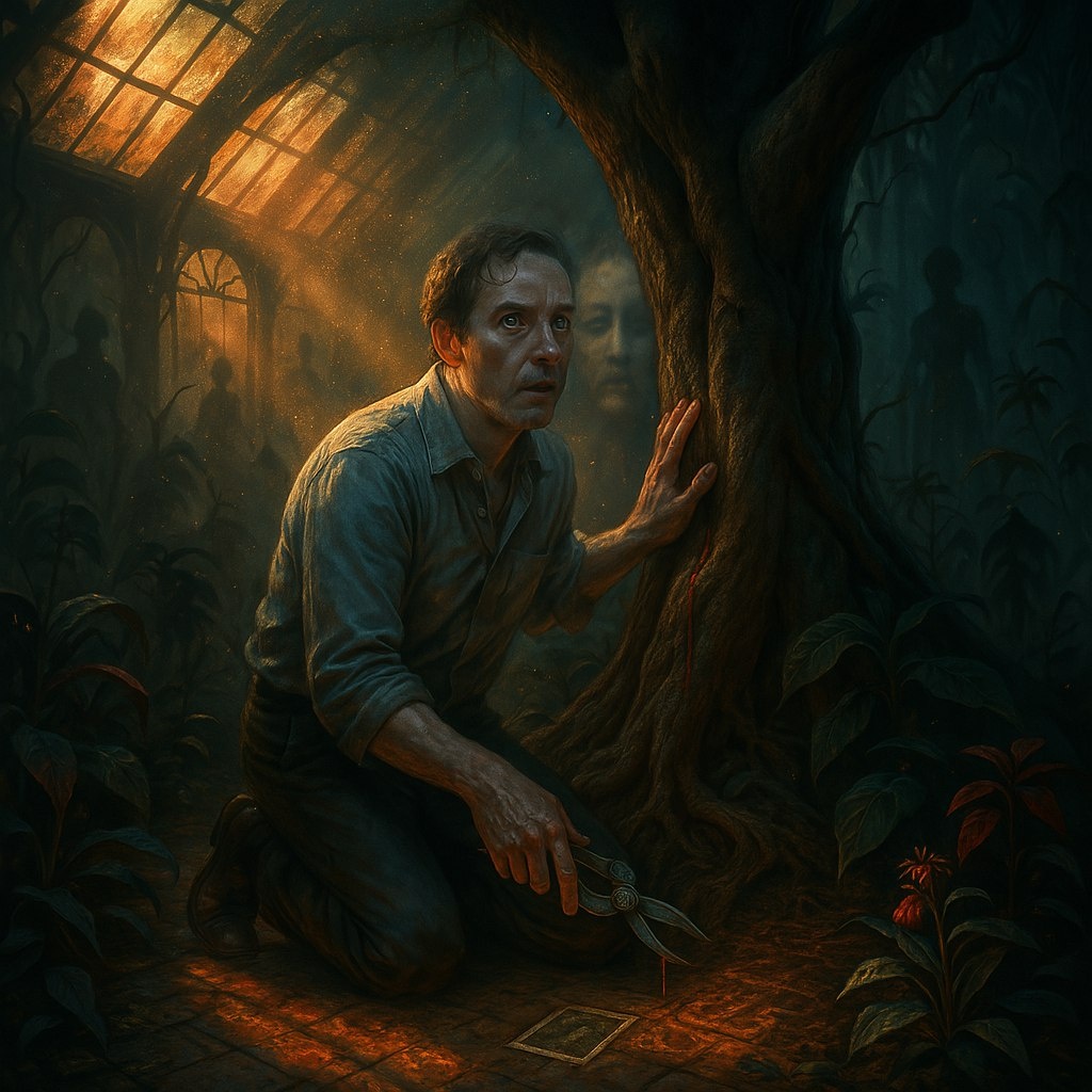 Наклонившись, я подобрал ножницы и сделал глубокий вдох. Запах влажной земли смешивался с чем-то металлическим, напоминающим кровь. Странно для оранжереи, где не пахло ни свежескошенной травой, ни цветами.