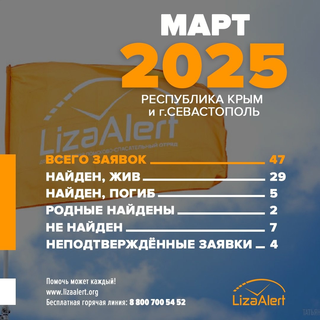 За март в крымский поисковый отряд "Лиза Алерт" поступило 47 заявок