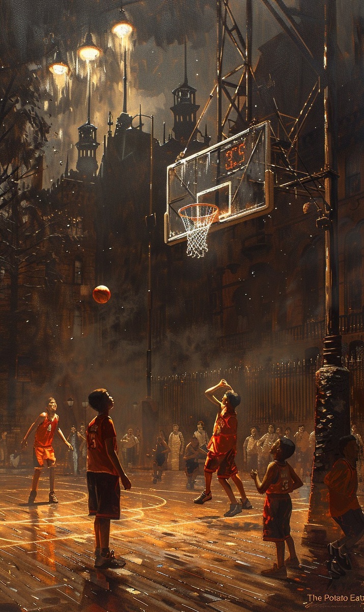 Создано на основе запроса: neo-gothic basketball arena in umber monochrome, backboard rendered with bristle brush drags, players as shadowy potato-eater figures, parquet floor scraped by palette knife, sodium lamps mimicking 19th-century gaslight, scoreboard numerals in leaden impasto, steel bleachers with burnt sienna corrosion, canvas weave texture in air, coal-dust haze over court, Dutch angle composition, 1885 "The Potato Eaters" chiaroscuro, ball trajectory as smeared umber streaks, minimalist hoops with iron oxidation --- Автоперевод: Неоготическая баскетбольная арена в монохромке Umber, заклятая за задней панель Интересно вышло? 🤔 https://dzen.ru/id/65c0c65c86e4f837c27b24d7 #ИИ #AI #нейросеть #midjourney #art