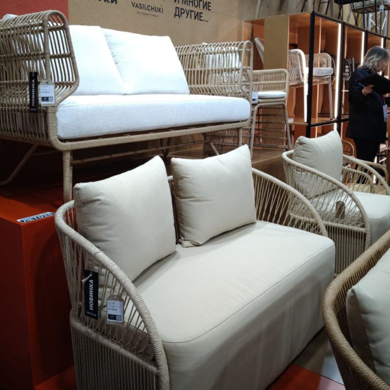 С 1 по 4 апреля редакция нашего канала посетила 30-ю юбилейную выставку MosBuild. Это мероприятие — крупнейшее в нашей стране и СНГ. Здесь встречаются представители строительства, архитектуры, ремонта и, конечно, дизайна интерьера. Мы пообщались с представителями брендов мебели, света, обоев, прошли километры красивых стендов, прикоснулись к прекрасному и выделили для себя и читателей несколько интересных решений, которые дизайнеры уже спешат использовать на практике. Впереди сезон дач, летних веранд и уютных балконов. На выставке огромной популярностью среди посетителей пользовалась садовая мебель. Металлические стулья и диванчики с мягкими сидушками, с плетением из ротанга, роупа. Расцветки были как традиционно черные, так и в цвет горчицы, охры. Увидели и лиловые модели, но их быстро разобрали. Вот еще популярные модели: Пару слов о раздвижных столах. Столешницы выполняли намеренно с плавными, сглаженными углами, чтобы всем было комфортно обходить мебель. Из материалов приметили к