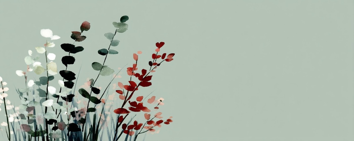 Создано на основе запроса: watercolor illustration of green plants on a mint green background, in the style of xiaofei yue, light white and