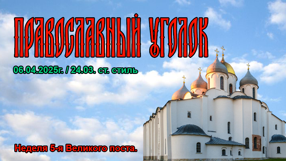 Неделя 5-я Великого поста. Предпразднство Благовещения Пресвятой Богородицы. День памяти преподобной Марии Египетской. День памяти Преподобного Заха́рия Отверстого, затворника. День памяти Святителя Арте́мия (Артемо́на), епископа Солунского (Селевкийского). День памяти Преподобного Заха́рия Печерского, постника. День памяти Мученика Петра Казанского. День памяти Исповедника Иринея (Чирич), епископа Бачского.