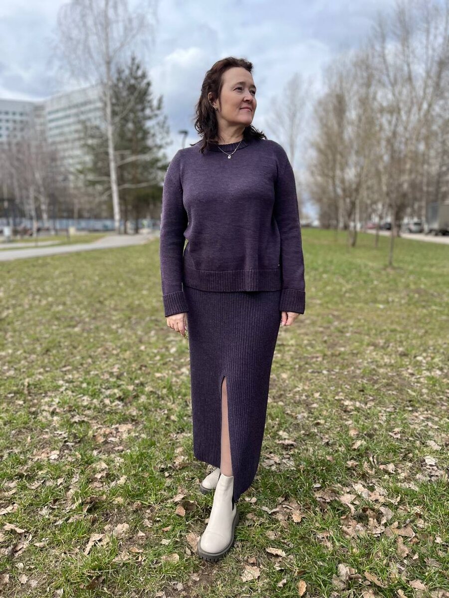 Доброго весеннего дня хоть и пасмурного 🫶🏻🫶🏻🫶🏻 Вот и фото моего нового проекта , респект любимому фотографу😘😘😘 Вязала на машине 5 кл Из двух видов пряжи Альба мулине 2400/100 с ниткой в тон меринос шелк кашемир 3000/100 Получился почти костюм☺️ Соотношение нитей разное немного… Юбка из толщины нитей 500/100 в 515 гр ,длиной 95 см на об 115 Джемпер по окружности 120 см, весит 360 гр, с толщиной нитей 545/100 Пряжа чудо😍😍😍 Шелковистый и уютный🥰🥰🥰