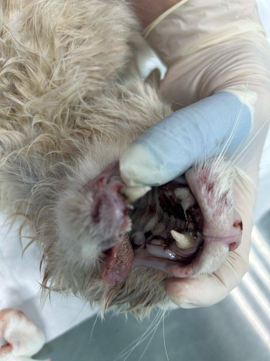После операции Склеили верхнюю и нижнюю часть Удар был с лева, сломан левый клык