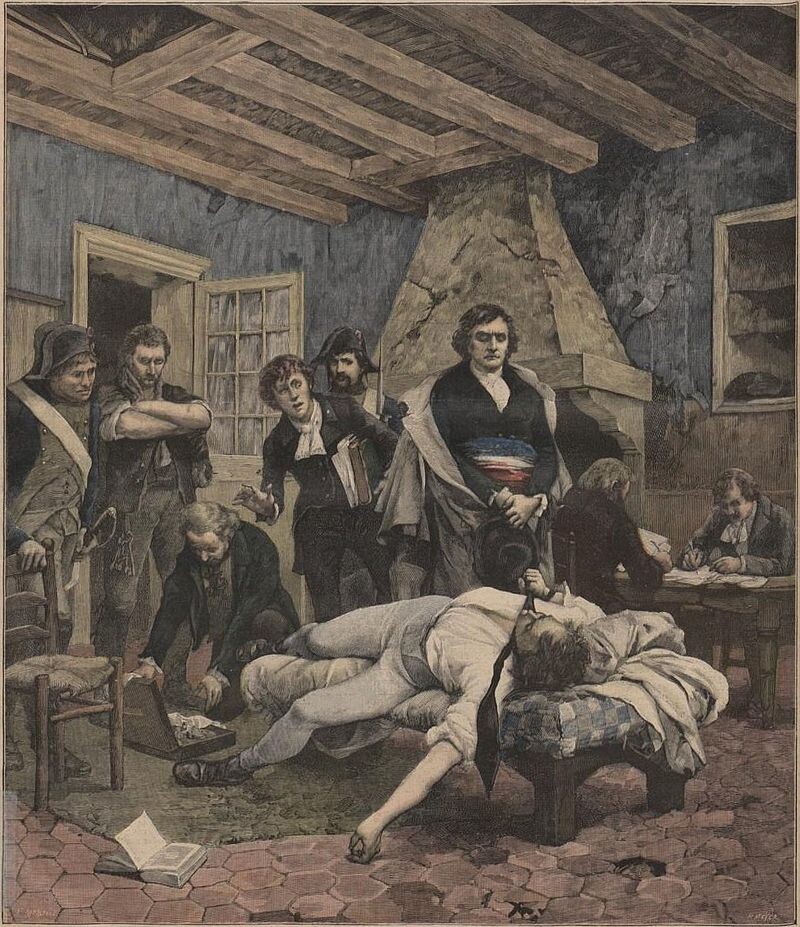 5 апреля 1804 года в тюрьме замка Тампль был убит генерал Жан-Шарль Пишегрю ( Jean-Charles Pichegru) участник заговора против Наполеона Бонапарта. Боевой генерал, его имя высечено на Триумфальной арке, третьей колонне. Он принял участие в заговоре с целью возвращения и коронации Людовика XVIII. Замыслы Пишегрю дошли до сведения Директории и когда в октябре 1795 года он попросил Директорию об отставке, к его удивлению, её немедленно приняли. В мае 1797 года выбран в члены, потом в президенты Совета пятисот, где, опираясь на роялистское большинство, выступал против Директории. Он готовил заговор, но во время переворота 18-го фрюктидора был арестован и сослан в Кайенну. Пишегрю и семерым другим удалось бежать из ссылки в Парамарибо. Генерал-губернатор Суринама де Фридеричи (нид.)русск. позволил ему сесть на корабль, идущий в Соединённые Штаты. Оттуда он уехал в 1798 году в Англию, а затем в Пруссию, и служил в штабе русского корпуса Александра Римского-Корсакова во время швейцарского пох