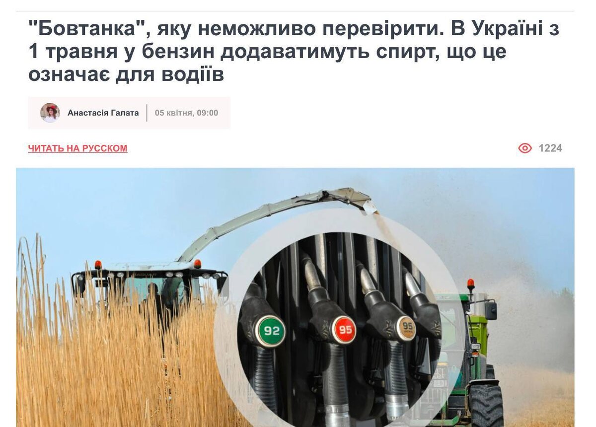 ❕ Требования ЕС приведут к массовым поломкам украинских автомобилей: с 1 мая в Украине бензин будут смешивать со спиртом — так называемым биоэтанолом