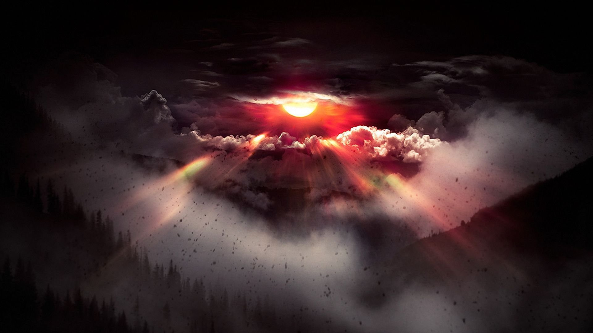 Тьма наступила сразу и везде, Луна исчезла, так как не отражала больше солнечный свет. Птицы, сбитые с курса внезапной тьмой, падают на Землю камнями. Завыли сирены тревоги по всей Земле, возвещая конец времен. Тьму разгоняет электрический свет, но свет нужен всем, а солнечные электростанции больше не работают.