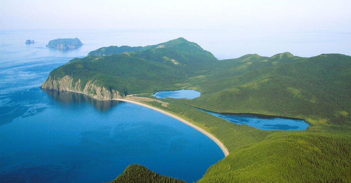 Ландшафт островов гористый, максимальная высота 720 м (гора Весёлая у восточного побережья Большого Шантара).