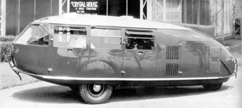 Бакминстер Фуллер. Длинная, обтекаемая форма, одно колесо сзади, два