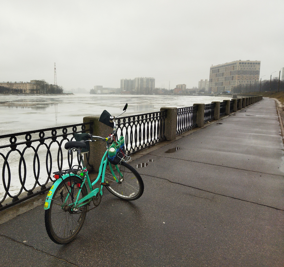 В выходные прокатилась на велосипеде — и не просто так, а совместила благотворительность с кайфом. Серым, туманным Питерским днём мне нужно было доехать до соседней станции метро, чтобы встретиться с женщиной, которая привезла из пригорода связанные вещички для клуба «28 петель». И знаете что? Я выбрала велосипед. Да, несмотря на погоду. Да, несмотря на то, что большинство в такую промозглость сидит дома или жмётся в тёплом транспорте. А мне — идеально. Вся дорога в моём распоряжении, впереди — туманная неизвестность, как в том мультике. Так и хочется крикнуть: «Ё-ё-ё-жи-и-ик, ло-о-о-оша-а-а-адка-а-а!» Фотки в такую погоду получаются почти чёрно-белыми, и только мой бирюзовый велосипед с авоськой выбиваются из этой монохромной сказки. Такие вылазки — мой способ не стоять на месте. Пока другие ноют про «плохую погоду», я ловлю моменты, которые потом превращаются в идеи для мастер-классов, вдохновение для новых проектов. После таких поездок в голове всё шевелится, и я возвращаюсь не