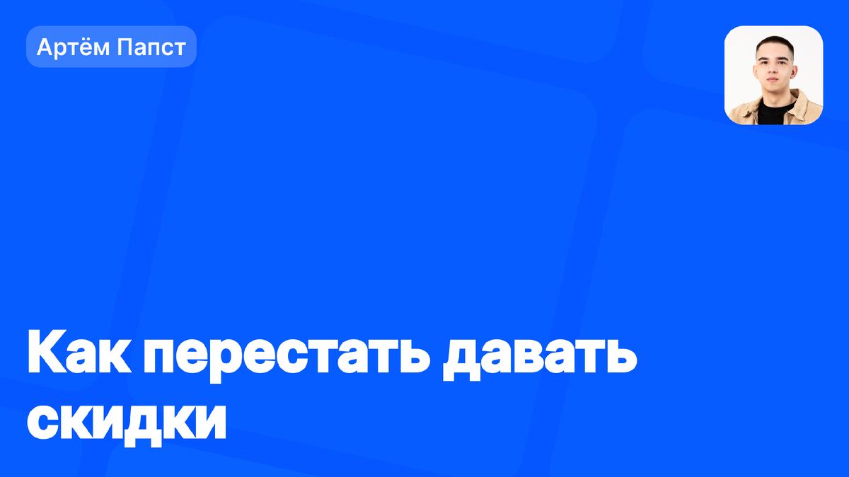 Сразу скажу, что я против скидок. Боясь потерять клиента, многие дают их всем подряд. Возникает мысль вроде: «Дай-ка я снижу цену на 10 000–5 000. Тогда клиент точно согласится». Проблема кроется в непонимании своего клиента. Обычно из-за слабого брифинга потребность не ясна. Нет ответа на вопрос, чего клиент хочет, какие у него боли. А без этого подготовить адекватное коммерческое предложение невозможно Да, КП обязательно нужно составлять. И вот представь, что был брифинг на скорую руку. Возможно, даже без созвона. А потом клиенту скидывают коммерческое предложение или, ещё хуже, сообщение в чате с описанием объёма работ... Как тогда клиент поймёт ценность услуги? Ему неважно, сколько стоит разработка сайта, если услуга не решает его проблемы. А на этом этапе многие дают скидки)) Конечно, возникают ситуации, когда клиент не готов сразу оплатить без скидок. Этому масса причин: начиная от отсутствия маркетингового бюджета в компании и заканчивая личной неприязнью к вам. Тогда узнайте у