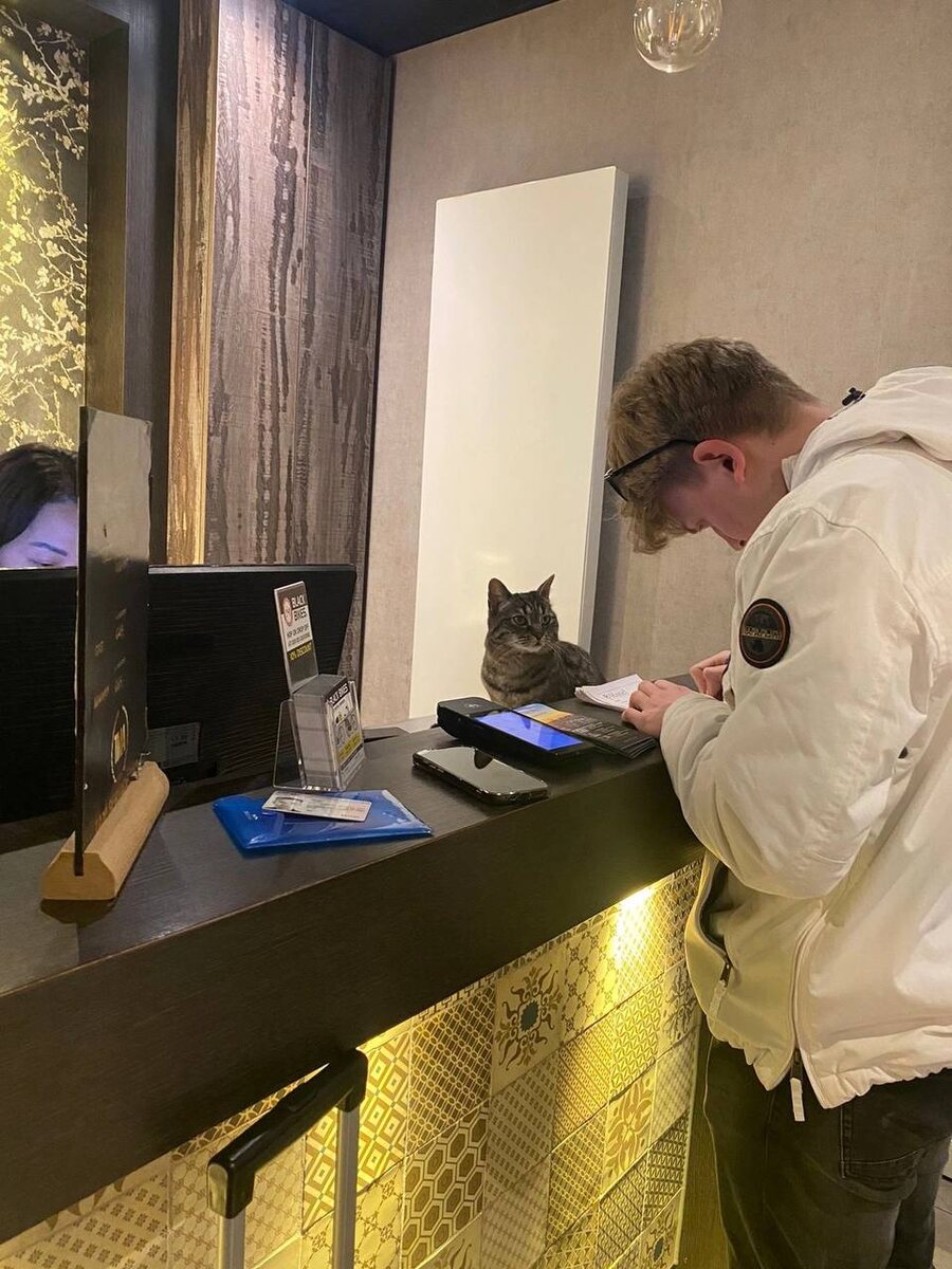 Телефон подкинул прошлогодние фото из отпуска как воспоминания, хочу поделиться с вами самым милым рецепшеном в мире, который мы видели)) При заселении в отель в Амстердаме наши документы принимал оооочень строгий и серьезный сотрудник рецепшена по имени Клио! Он осмотрел и обнюхал наши документы и убедился, что нам можно доверять!)) И только после этого разрешил себя погладить и дать вкусняшку! Еще он встречает и провожает всех гостей, и внимательно следит за правильностью заполнения документов! Состоит на довольствии отеля и ведет себя как полноценный сотрудник! Это было очень мило! На фото мой старший сын Миша