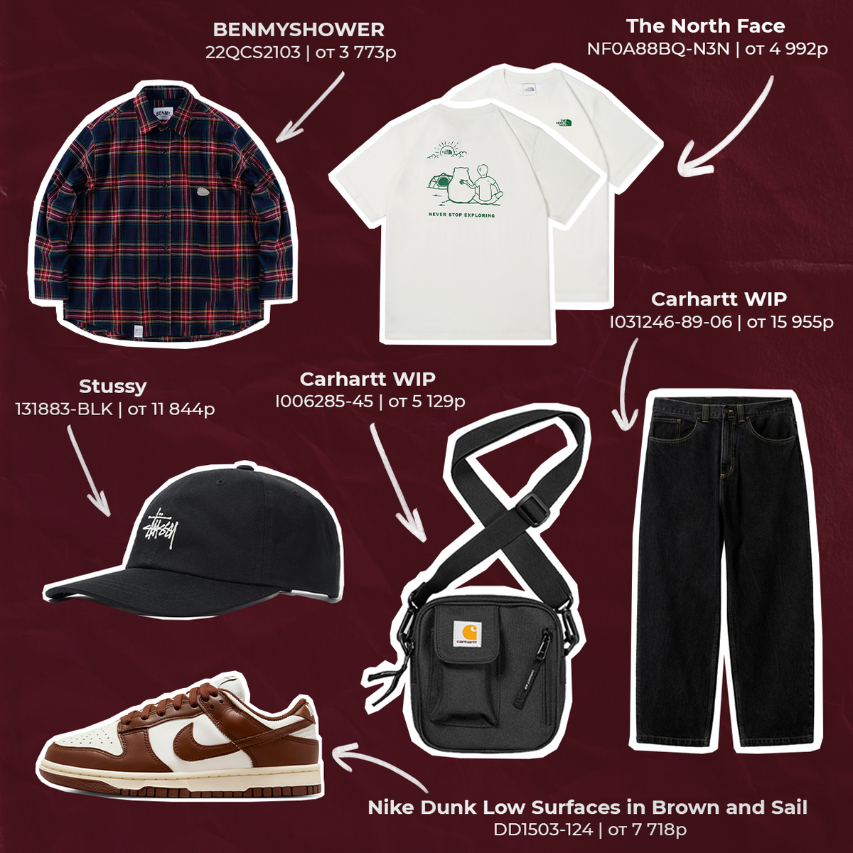 Но стоит подождать и все, свобода, верхнюю одежду в пакеты, а другие вещи миксуем между собой. Аутфит для вдохновения мы уже подобрали: Carhartt WIP, цена от 15 955₽* The North Face, цена от 4 992₽* BENMYSHOWER, цена от 3 773₽* Stussy, цена от 11 844₽* Nike Dunk Low «Surfaces in Brown and Sail», цена от 7 718₽* Carhartt WIP, цена от 5 129₽* *стоимость может изменяться в зависимости от курса и размера Больше интересного на нашем сайте POIZON