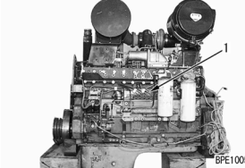 Регулировка клапанов KOMATSU PC400-7 ИСПОЛНЕНИЕ С ОБЩИМ НАГНЕТАТЕЛЬНЫМ ТОПЛИВОПРОВОДОМ ВЫСОКОГО ДАВЛЕНИЯ. Отсоедините 6 топливопроводов высокого давления (1). Снимите также зажимы топливопроводов. Если коромысло не сдвигается, значит, коленчатый вал не находится в