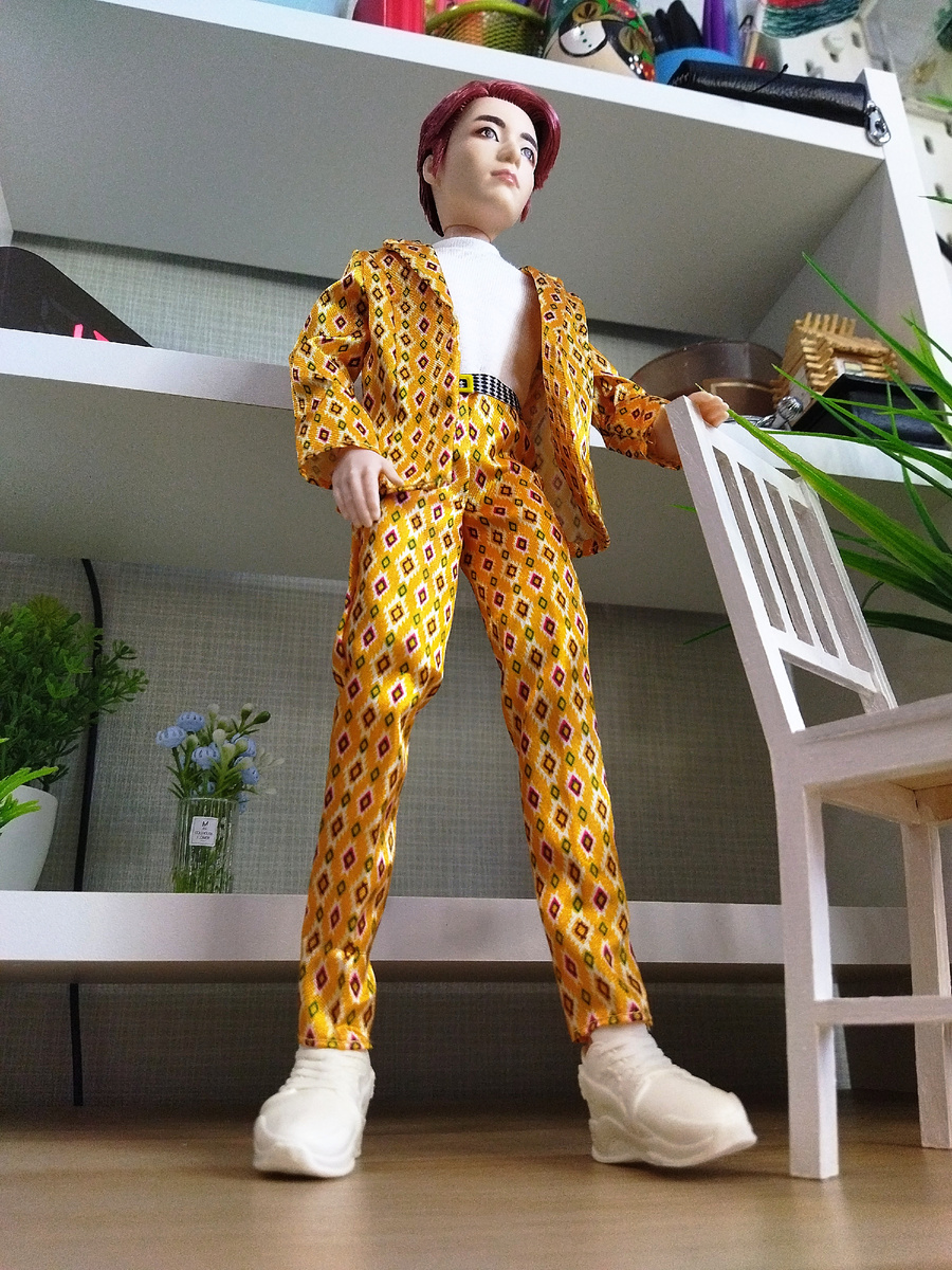 Доброго дня, сохоббиты! 🌷 В позапрошлой статье я рассказывала вам о чудесных подарках от Танюши, автора канала "My dolls, my world"👇 И вот пришло время рассмотреть парня поближе))) Внешне кукла очень приятная, типичная корейская красота айдолов. Отмечу, что о корейской культуре я знаю совсем немного, по сути из нескольких дорам, которые я посмотрела года 3 назад. Но у меня сложилось стойкое впечатление, что все актеры в них, в частности играющие главные роли, сами словно куклы. В хорошем смысле этого слова. Действительно красивые девушки и парни. Пиджак долой) Под ней оказалась футболка, которая оснащена сзади небольшой липучкой. Обувь у Чонгука классная! Полностью белая, но очень детализирована. Пластик мягкий, приятный на ощупь. У меня сегодня игривое настроение, так что я не могла не раздеть этого парня😁 Тут, конечно, всё грустно. Почему то Маттел пожалел пластика на этих красавцев и сделал их по телосложению совсем подростками. Хотя стоит отметить, что подростки эти на спорте) М