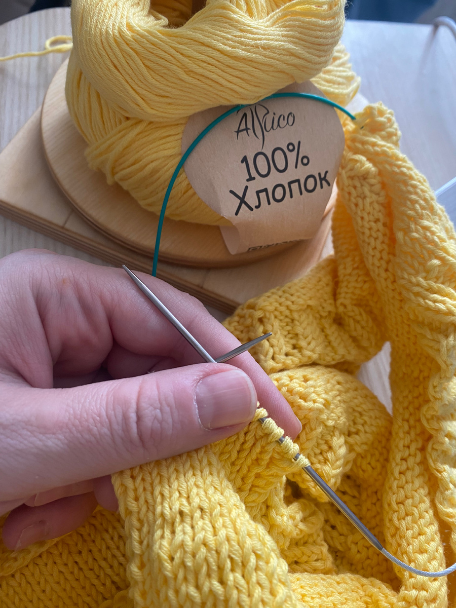 Сижу вяжу себе не спеша летнюю майку из хлопка. Пряжа — китайская, и мне очень нравится! Насыщенный цвет, приятная мягкая ниточка 😍 посмотрим, что будет с изделием после ВТО… В Египте, хлопковой стране, весь хлопок был либо турецкий (Дива), либо местных брендов, но и тот и другой не сравнится с мягкостью этой нитки!