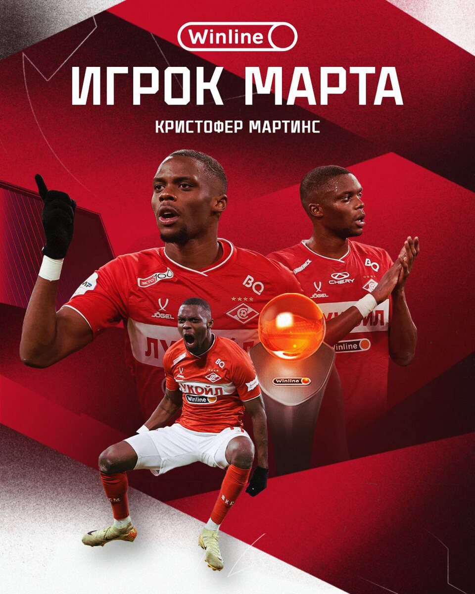 🏆 Кристофер Мартинс — Winline Игрок месяца в «Спартаке» ⚽️ Полузащитник забил 4 гола в марте и набрал 68% ваших голосов 🔝 ❤️ со всех красно-белых для нашего №35! 🤩 Подпишись на Хроники «Спартака» ☑️
