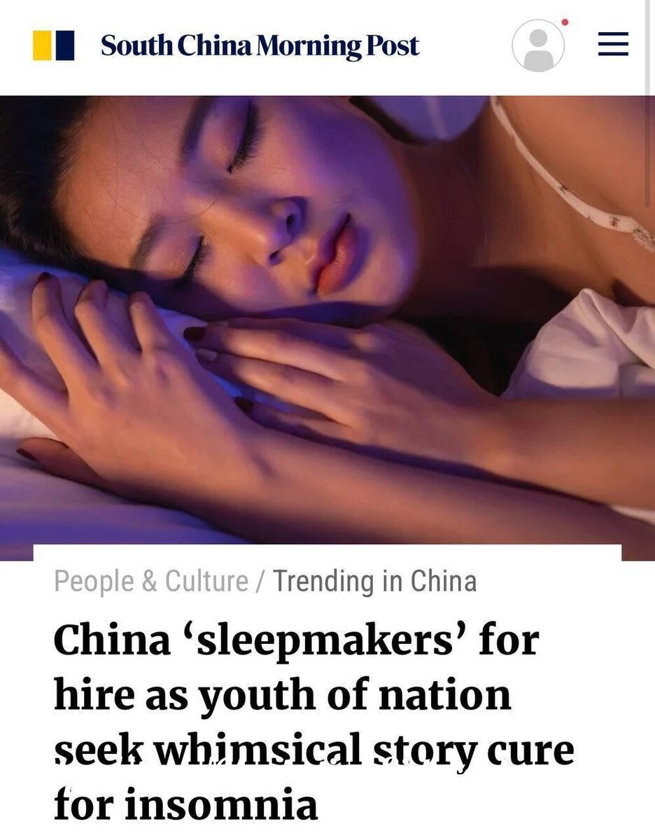 Сон за деньги Нет, это совсем не то, о чём могли подумать. В Китае набирает обороты новая профессия — слипмейкер. Это человек, который помогает другим заснуть за деньги. Нет, он не приходит к вам домой с тёплым молоком и печеньем, а просто разговаривает перед сном, эмоционально поддерживает или рассказывает сказки. Звучит как очередной развод от продавцов воздуха? Возможно, но в Китае услуга на взлёте: выгорающие и тревожные менеджеры массово заказывают таких «заклинателей сна». Кстати, услуга доступна ещё и онлайн через Zoom. А теперь к самому интересному — про деньги. В среднем слипмейкер зарабатывает 260 юаней в час (около 3000₽), что при полной занятости выходит до 370 000₽ в месяц. Ключевые требования для слипмейкера — мягкий приятный голос, высокая эмпатия, хорошие навыки общения. Карьера в IT больше не кажется такой привлекательной, правда? #сон #китай #сервис #счастье #услуга #профессия #психология