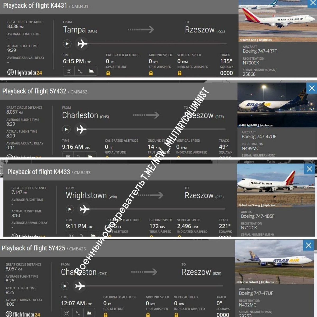❗️⚡️Набирает обороты переброска американского оружия на Украину через польский хаб в Жешуе самолётами связанных с Пентагоном частных
