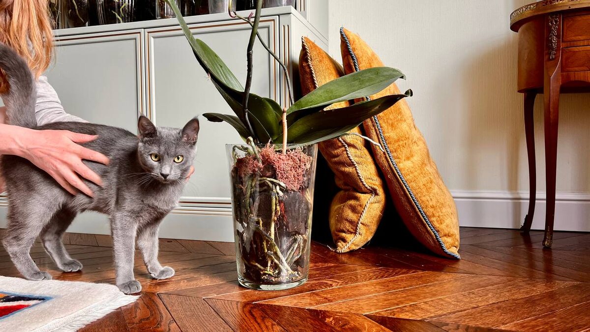 Пересадила свою самую большую орхидею. Из вазы 6 литров в вазу 7 литров. Поставила рядом Балбеса для иллюстрации «смотрите, какая огромная ваза». А он такой здоровенный стал, что в итоге «смотрите, какой огромный кот»!🤦🏼♀️😁