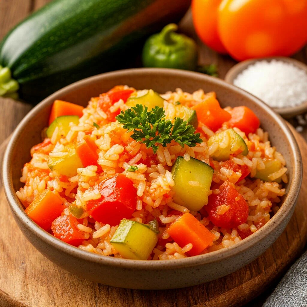 Приготовление тушеных кабачков с рисом и овощами – это отличный способ создать легкое и питательное блюдо для всей семьи. Для начала подготовьте все необходимые ингредиенты: рис (150 г), помидор (1 шт.), кабачок (1 шт.), репчатый лук (1 шт.), морковь (1 шт.), болгарский перец (1 шт.), растительное масло (2 ст.л.), соль и перец по вкусу. Рис тщательно промойте под проточной водой до тех пор, пока вода не станет прозрачной. Овощи вымойте и очистите. Лук нарежьте мелким кубиком, морковь натрите на крупной терке, кабачок и болгарский перец нарежьте кубиками, помидор также нарежьте небольшими кусочками. В глубокой сковороде или кастрюле разогрейте растительное масло. Обжарьте лук до золотистого цвета, затем добавьте морковь и обжаривайте еще несколько минут. Добавьте кабачок и болгарский перец, тушите овощи, периодически помешивая, около 5-7 минут. Затем добавьте помидоры и тушите еще 3-5 минут. Добавьте промытый рис к овощам, посолите и поперчите по вкусу. Залейте все водой так, чтобы вода