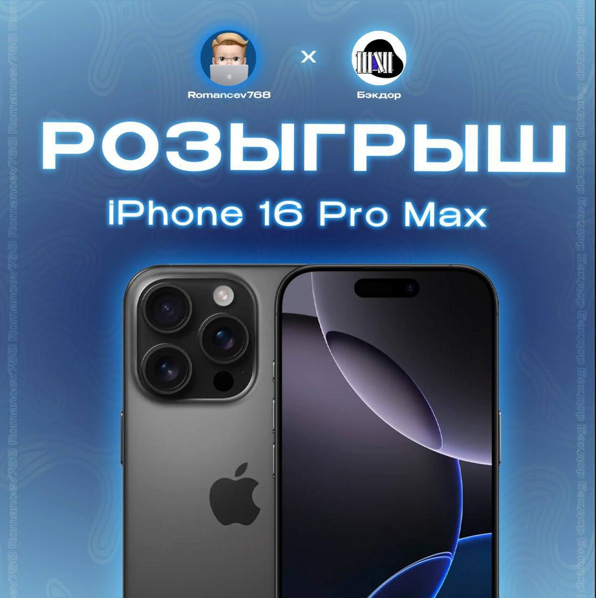 Это ваш новый iPhone 16 Pro Max 👆 Хотя цвет вы сможете убрать любой👌🏻 10 апреля завершится розыгрыш 16 Pro Max и условия очень простые: • быть пописанным на @romancev768 • быть подписанным на @whackdoor • нажать кнопку «Участвовать» под постом https://t.me/Romancev768/12061