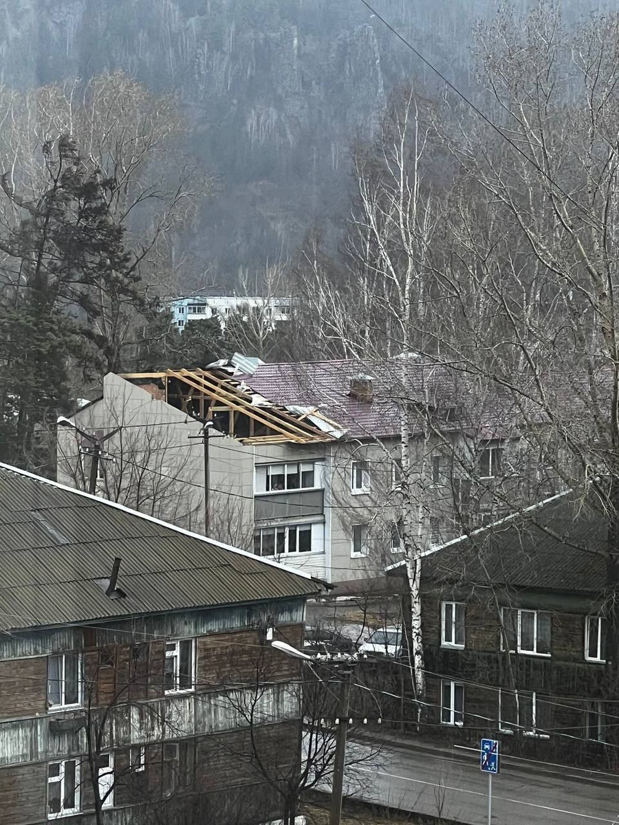 Сегодня ветер снёс часть крыши у дома на улице Чкалова. Будьте осторожны. По возможности оставайтесь дома.