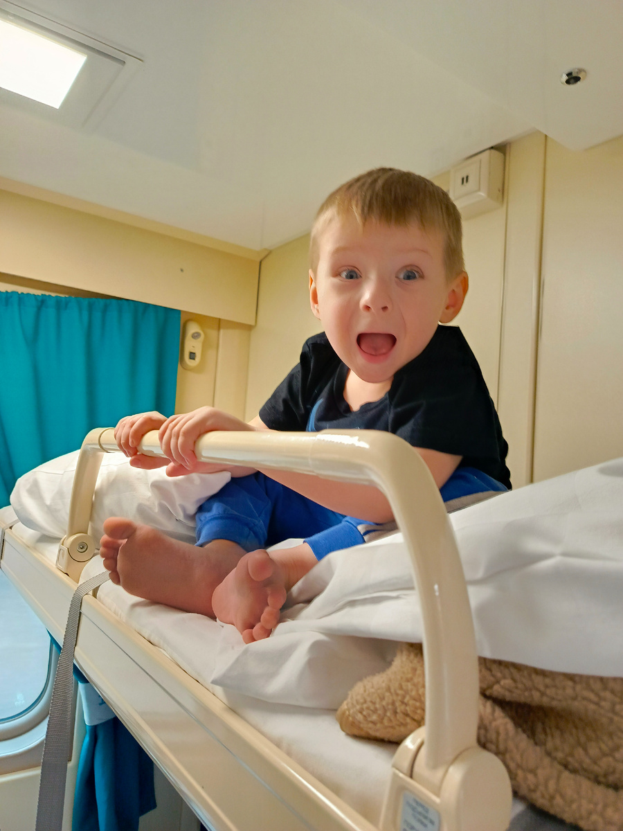 Нам впервые предложили выездную реабилитацию в «Искру», и мы решили поехать, хотя, честно скажу, родственники отговаривали... Время сейчас неспокойное, а вы в Крым собрались... Но, с другой стороны, сейчас могут быть разные ситуации и в других городах, а нам необходима реабилитация, ведь после каждой обязательно появляются новые навыки и улучшения, что меня очень радует. В поезде мы ехали впервые... И я, конечно, очень боялась, как он выдержит путь в 28 часов... Но на удивление Добрику очень понравилась поездка, и он не устраивал истерик, как я ожидала... Да, конечно, мне пришлось ему давать телефон, чтоб он мог поиграть или посмотреть мультики, в повседневной жизни телефон я даю ему именно в дороге, в автобусе или метро... Так как долго он сидеть без дела не может, начинает либо звуки издавать разные, либо пытается побежать по вагону метро... Либо начинается истерика, поэтому всегда в дорогу у нас припасены разные фрукты и печеньки для перекуса, ну и, конечно, мамин телефон — помощь.