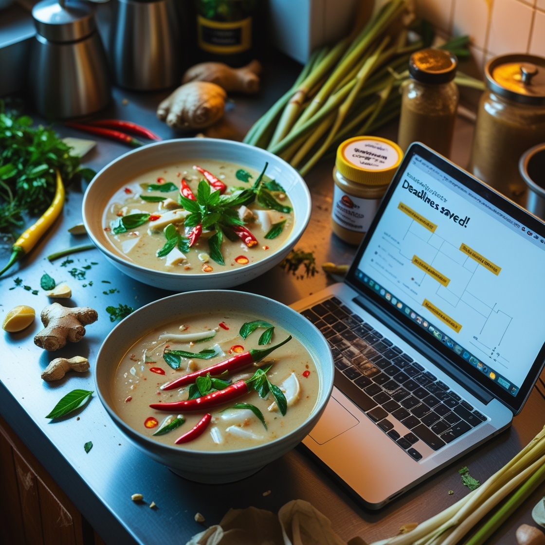 «Как несолёный суп стал уроком гибкости (и спас мой дедлайн!)» «Этот суп я назвала „Хаос“. Вместо соли я добавила сахар, забыла про картофель, а лавровый лист уронила в раковину. Но именно он научил меня, как превратить бардак в порядок — и не только на кухне. Расскажу, как кулинарный провал стал ключом к успеху в работе». «В тот день я готовила суп для гостей. Всё шло не так: телефон звонил, дети требовали внимания, а я, нервничая, перепутала банки с солью и сахаром. Когда суп попробовала, поняла: это невозможно есть. Гости были на пороге, времени — ноль. Но вместо паники я сделала глубокий вдох и… переписала рецепт на ходу. Добавила кокосовое молоко, имбирь и превратила несолёный овощной суп в азиатский том-ям. Гости сказали, что это лучшее, что они пробовали. А на следующий день я применила этот подход к проекту на работе: Ингредиенты (на 4 порции): Приготовление: Почему это работает?