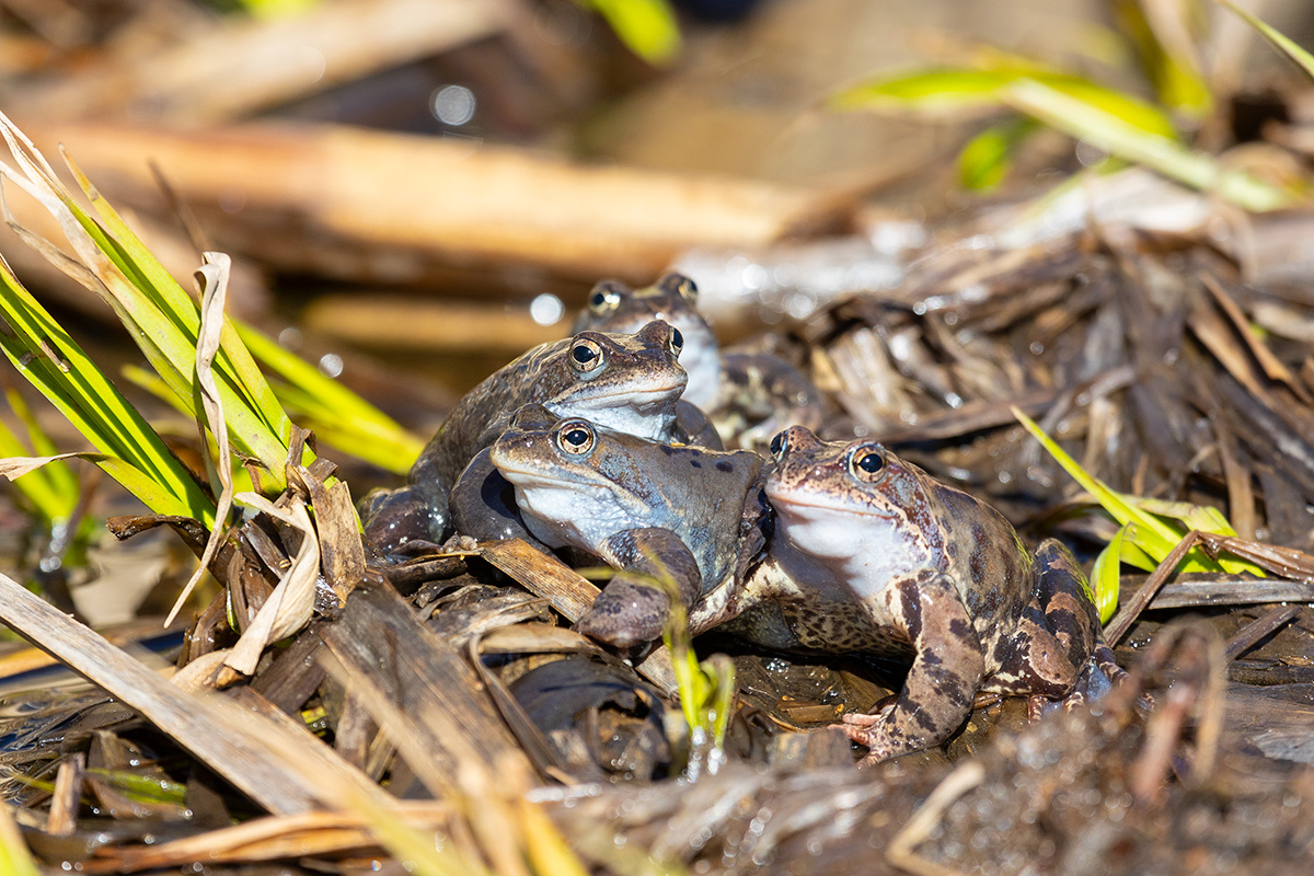 Вот так всегда и бывает. Идешь в магазин за хлебом, а возвращаешься с новым смартфоном. Решили поймать последние деньки хорошей погоды перед обещанным возвращением зимы, поехали в парк за птичками и лаской, а нашли царевну. Причем не одну, а целый гарем. А дело было так. В Салтыковском лесопарке мы были не раз, но все время примерно в одних и тех же местах. А тут глянули на карту и подумали, что интересно было бы посмотреть на Блюдечкин пруд, уж больно название прикольное. Не знаю, почему его так назвали, ни формой, ни красотой он на блюдечко не тянет. Может просто потому, что рядом Тарелочкин пруд. В общем кто-то веселый давал местным водоемам название. Все самое интересное оказалось на небольшой луже среди тростника, рядом с этим Блюдечком. Из воды на нас смотрели десятки царевен. Ну в смысле царевен-лягушек. Хотя, может это и не царевны вовсе были, а царевичи. Кто ж их там разберет. Короны ни на одной не было, а стрелы пускать вроде некому. В общем остались царевны без Ивана-царе