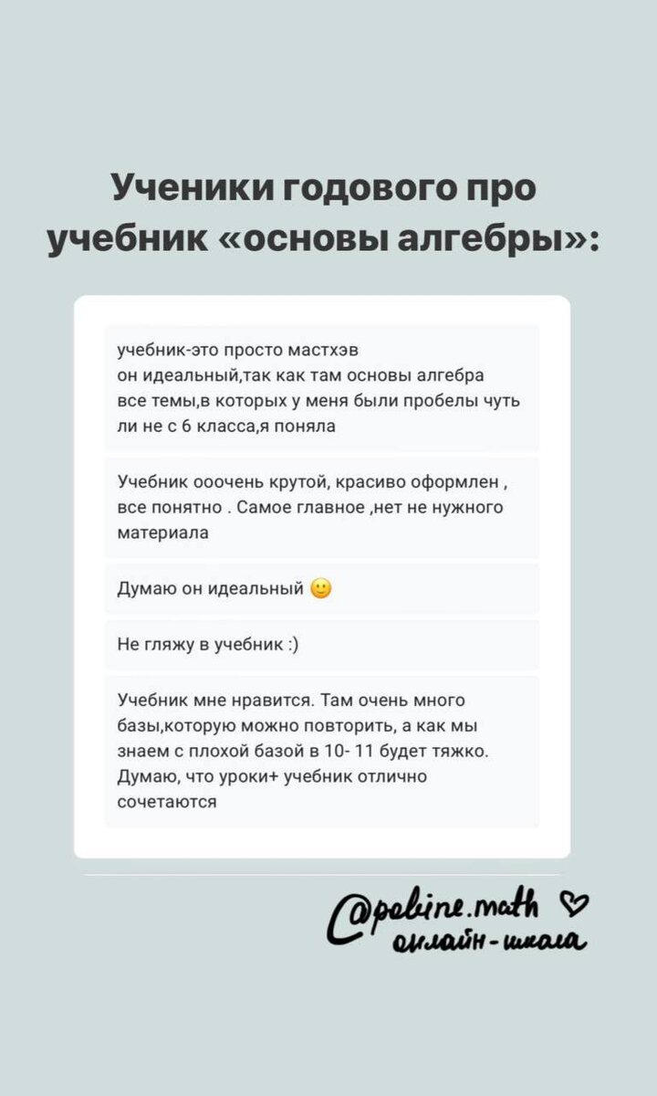 Что пишут про наш учебник «Основы алгебры» ученики годового курса ОГЭ/ЕГЭ 💖 кстати на курсах мы выдаем его бесплатно, но набор закрыт
