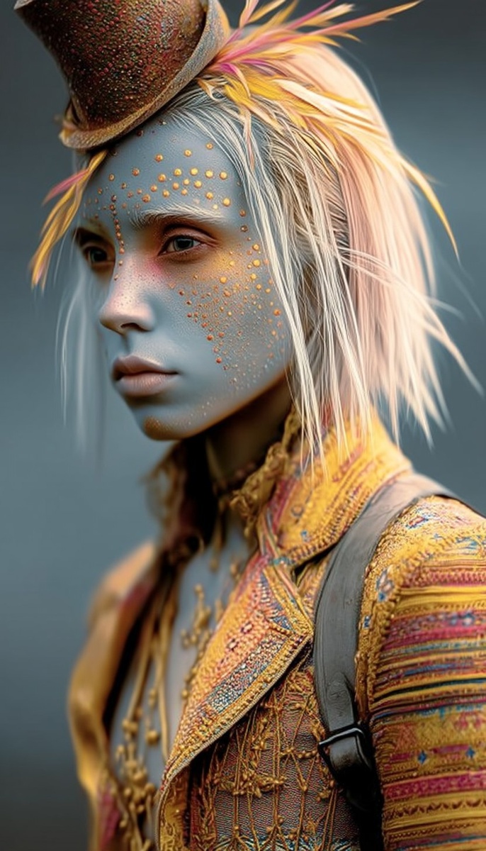 Создано на основе запроса: high fantasy character, Life magazine photo, full body image, artful dynamic unique strange beautiful superb epic primordial spirit-creature humanoid, scenic open background, tribecore, galaxycore, psychedelic, vivid colors, photo realistic, 8K 3D. Professional color grading. national geographic, ISO 400. 55mm lens. A Canon EOS R6 Mark II. Aperture: f/1.8. Large depth of field. Optical lens. Shutter speed: 1/600 --- Автоперевод: Высокий фэнтезийный персонаж, фото журнала Life, изображение всего тела, искусная динамика уникальная странная красивая превосходная эпическая изначальная дух-гуманоид, живописный открытый фон, Tribecore, Galaxycore, психоделический, яркий цвет, фотореалистичный, 8K 3d. Как тебе картинка? 🤔 https://dzen.ru/id/65c0c65c86e4f837c27b24d7 #ИИ #AI #нейросеть #midjourney #art