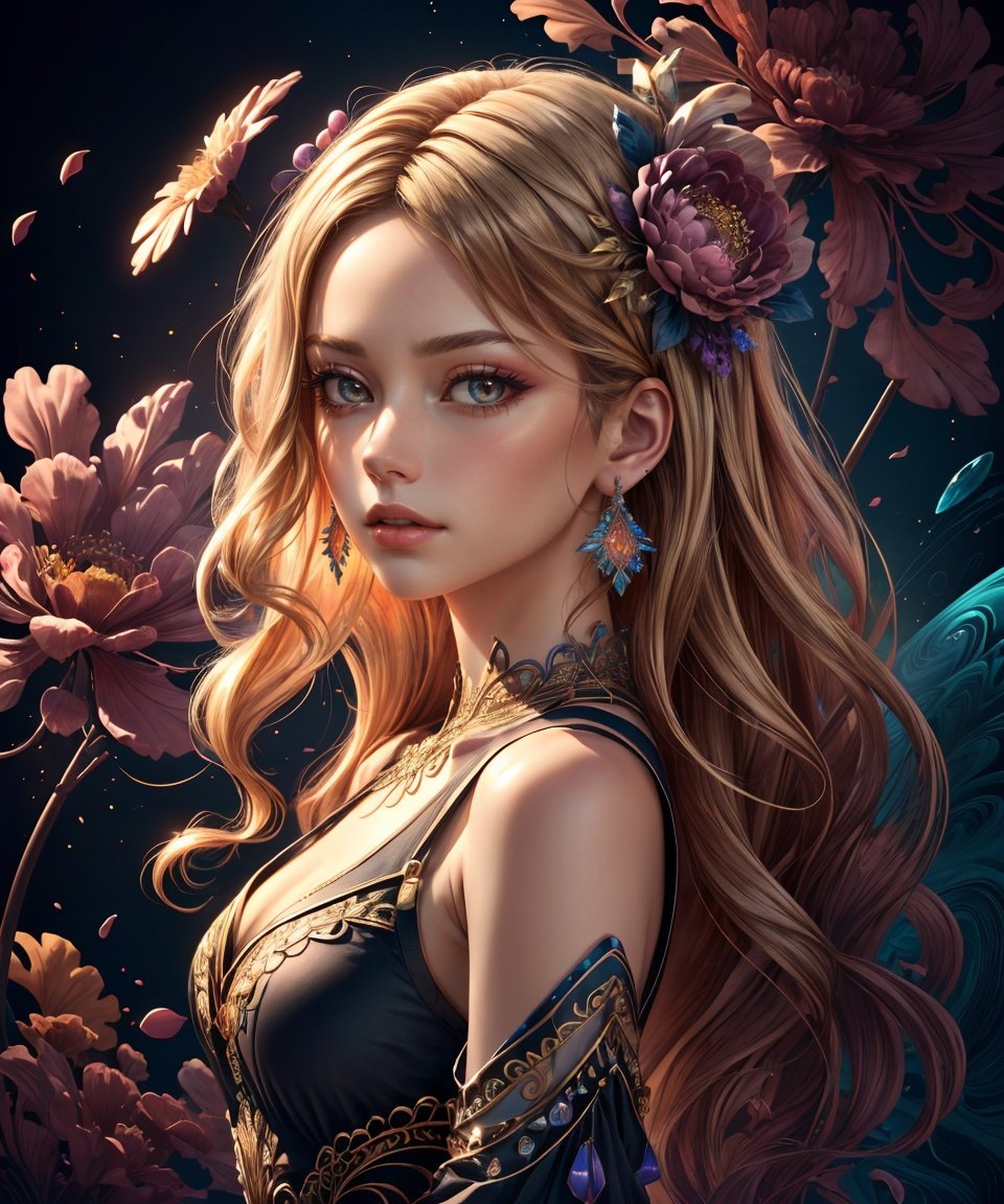 Приветствую! Портретики, созданные на hello2DAnime - это, конечно, здорово, но пора бы уже сменить модель. Кстати, напоминаю, что речь сегодня пойдет о все том же промте на fractal-art. Предыдущая статья здесь. И в этот раз будет возвращен полный промт. Однако в нем я указала цвет волос. (лучшее качество, шедевр, официальное искусство, красиво и эстетично:1.2), 1 девушка, блондинка, (украшения для волос, серьги, цветочные украшения для волос), верхняя часть тела, динамическая поза, смотрит на зрителя, частица, ветер, цветок, замысловатый фон, чрезвычайно детализированный, (фрактальное искусство:1.2), красочный, (зентангл:1.2), (абстрактный фон:1.5), (много цветов:1.4), пикселизированные фрагменты, повреждение данных, красочный шум, визуальный хаос, современная эстетика, реалистичный LUT, кинематографический LUT, asianLess, длинные волосы, средний план:1.2, центральный фокус, симметричный,, <lora:more_details:0.4> Итак! В данном случае я использовала версию 4.0. Яркие, броские, цветочны